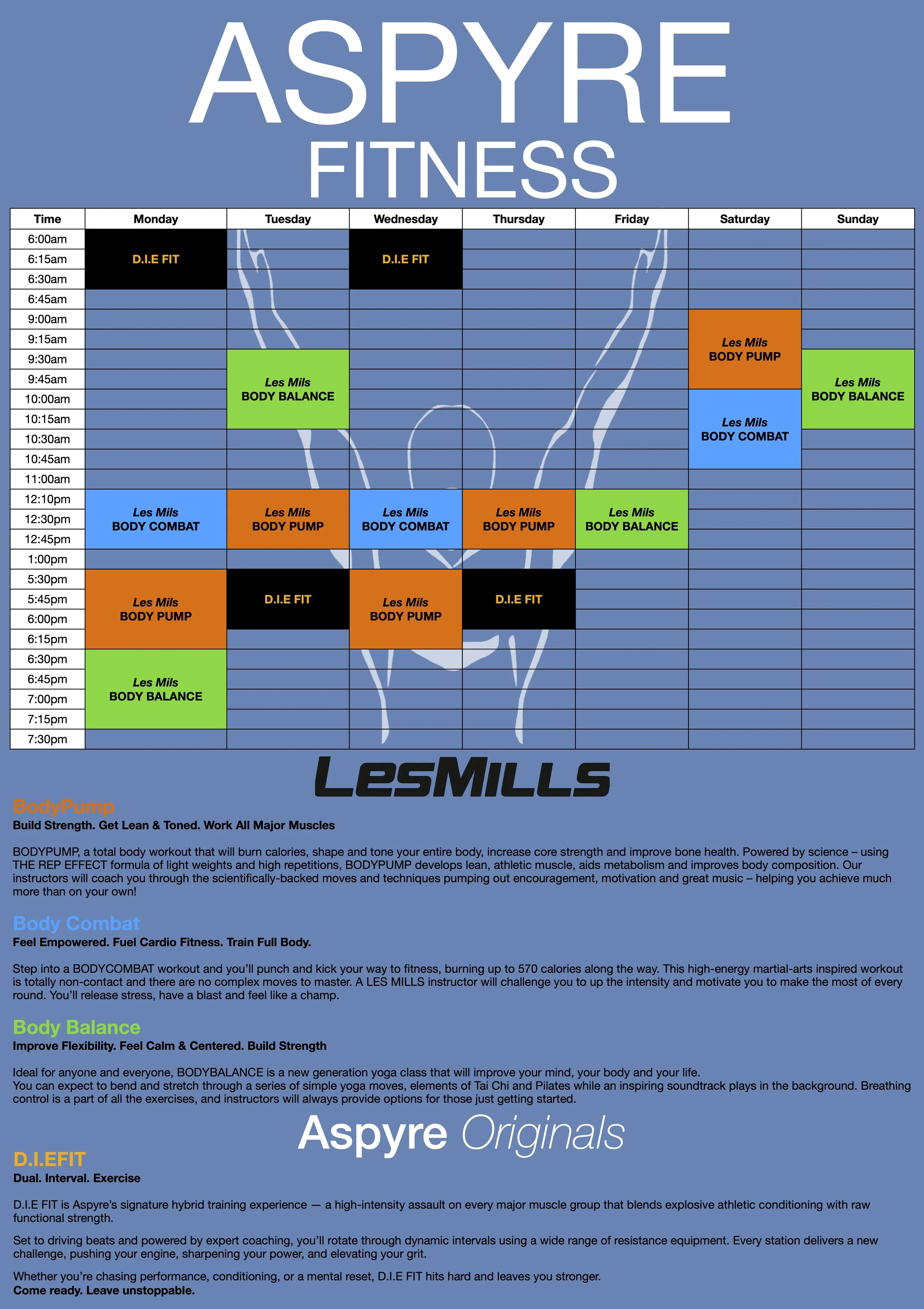 Note: 6am classes require 24/7 access membership.